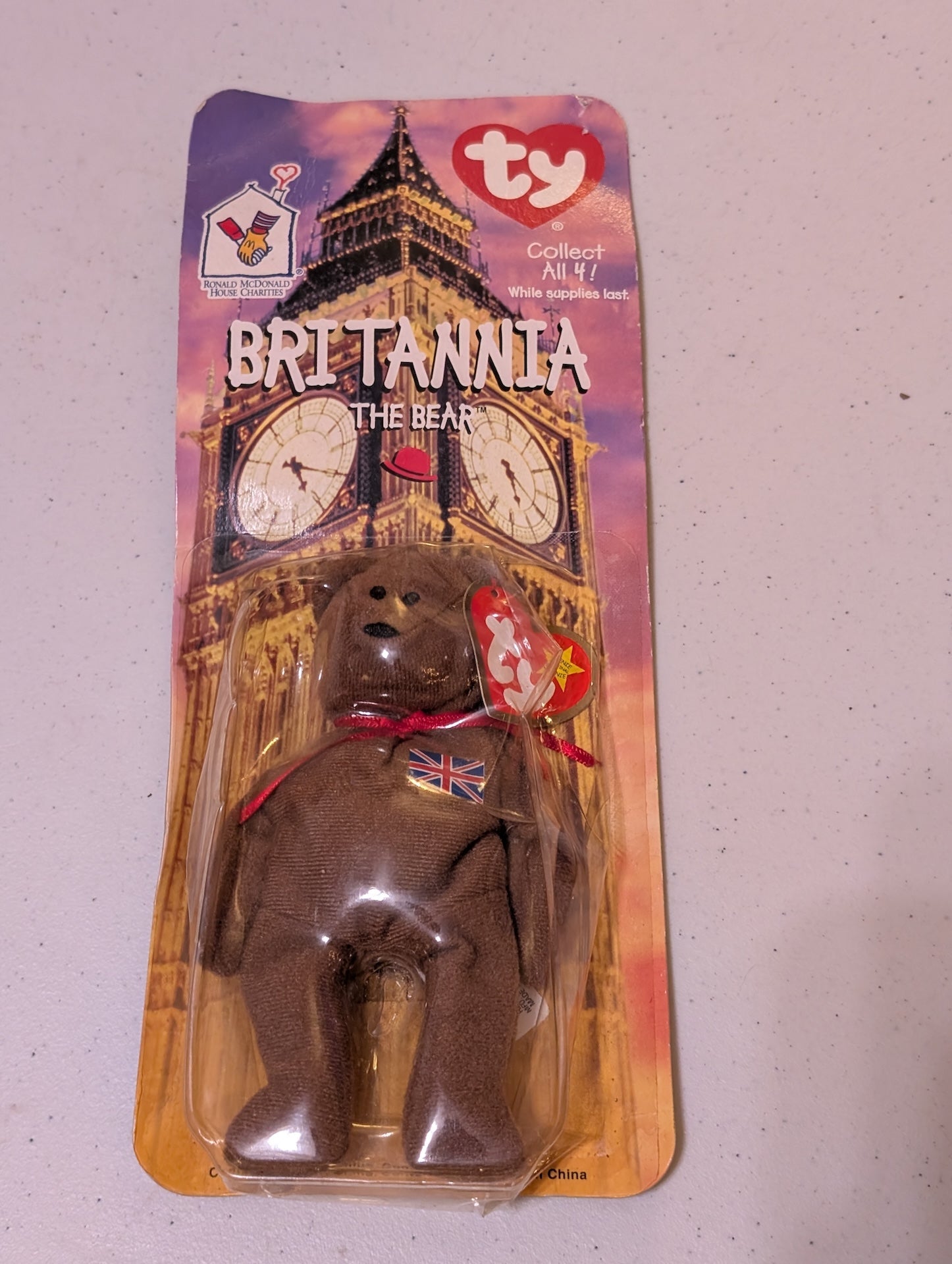 Britannia the Bear (McDonald's) - Ty Teenie Beanie (Brown, 1999, Plush Toy in Packaging)