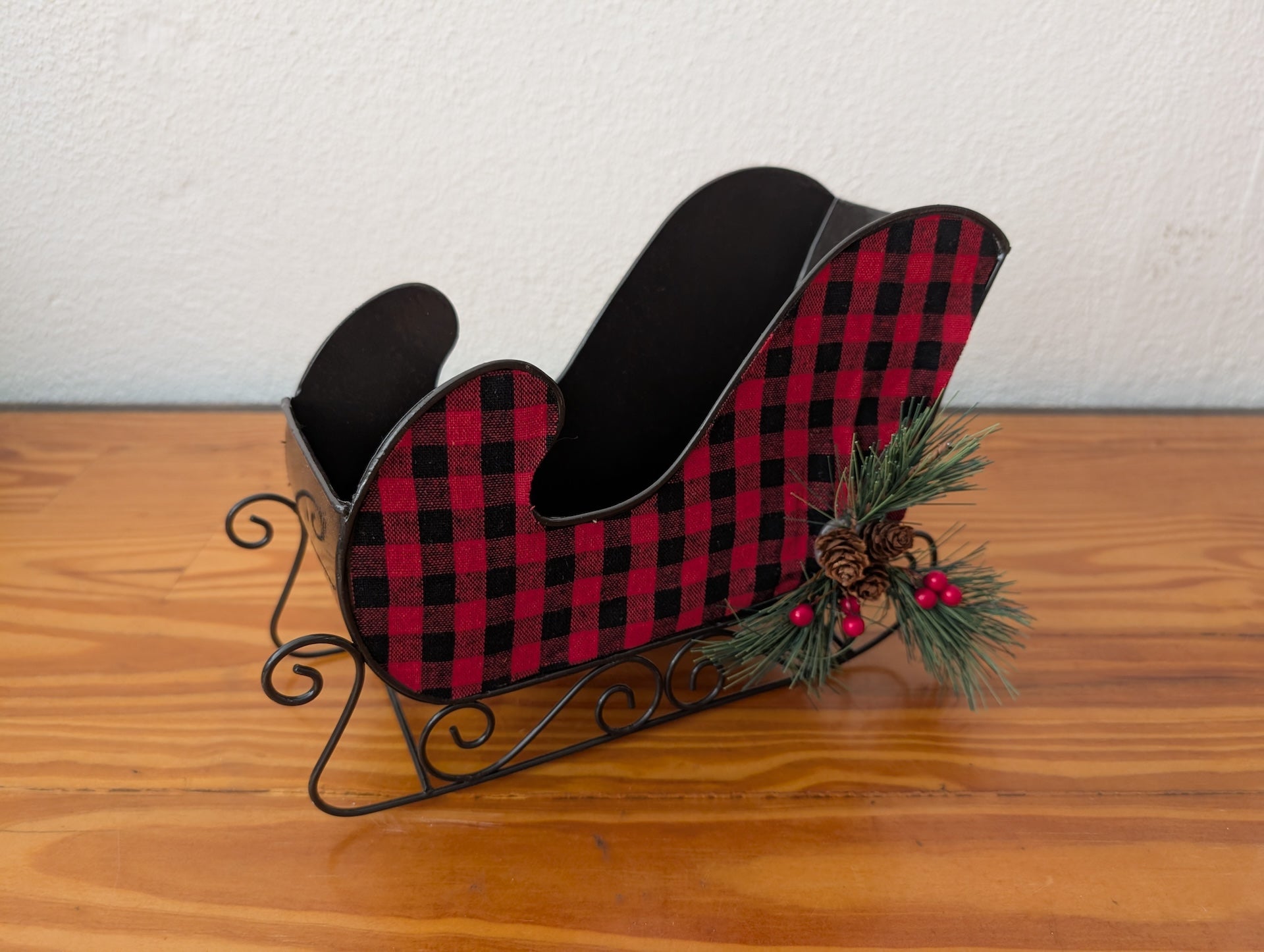 Buffalo Plaid Sleigh from Unknown - Holiday Decor (Metal, Fabric, Plastic Tabletop Decor, Farmhouse, Rustic, Cabin, Black, Red)