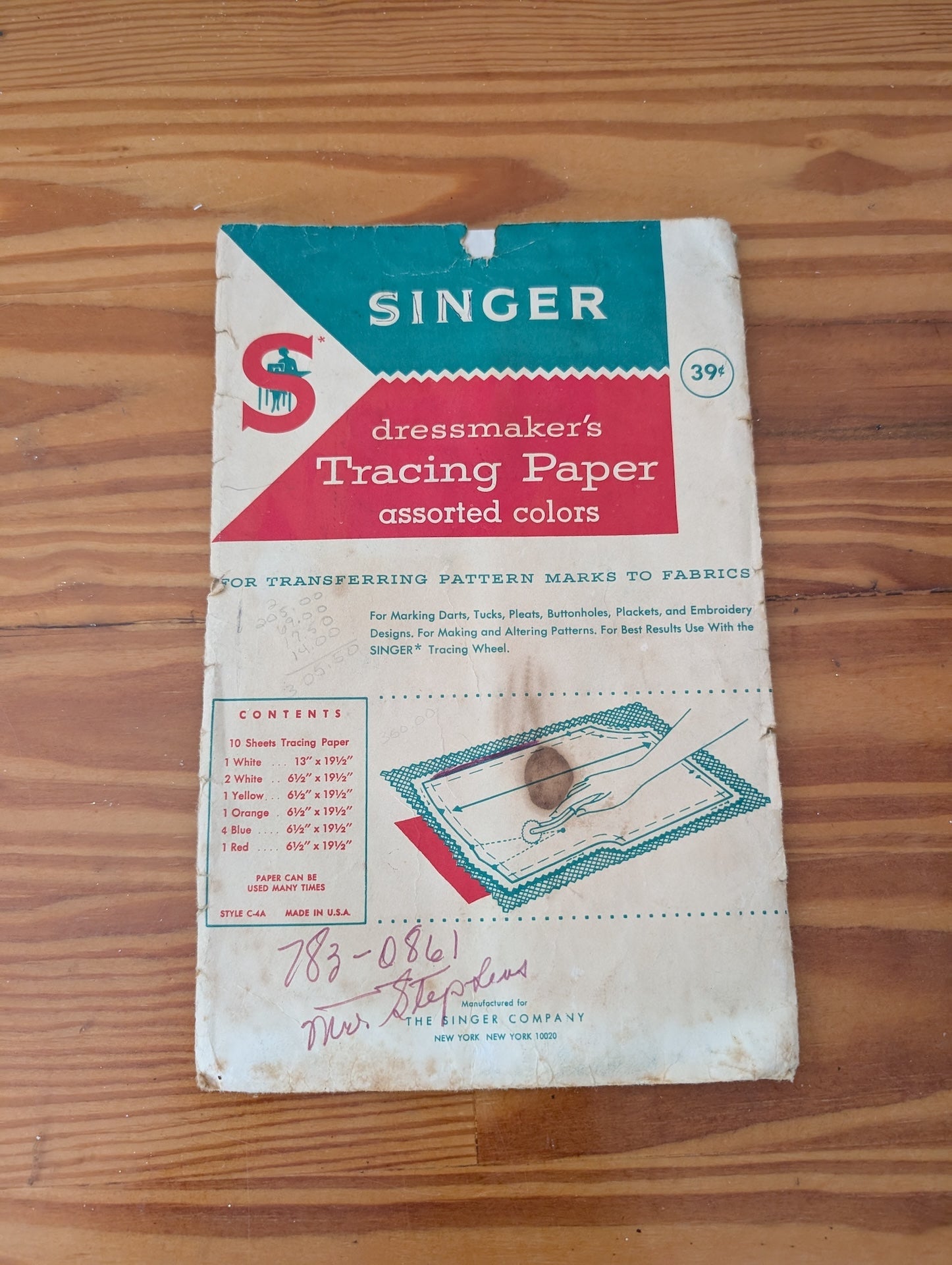 A vintage package of "Singer Dressmaker's Tracing Paper" in assorted colors. The original price was 39 cents.