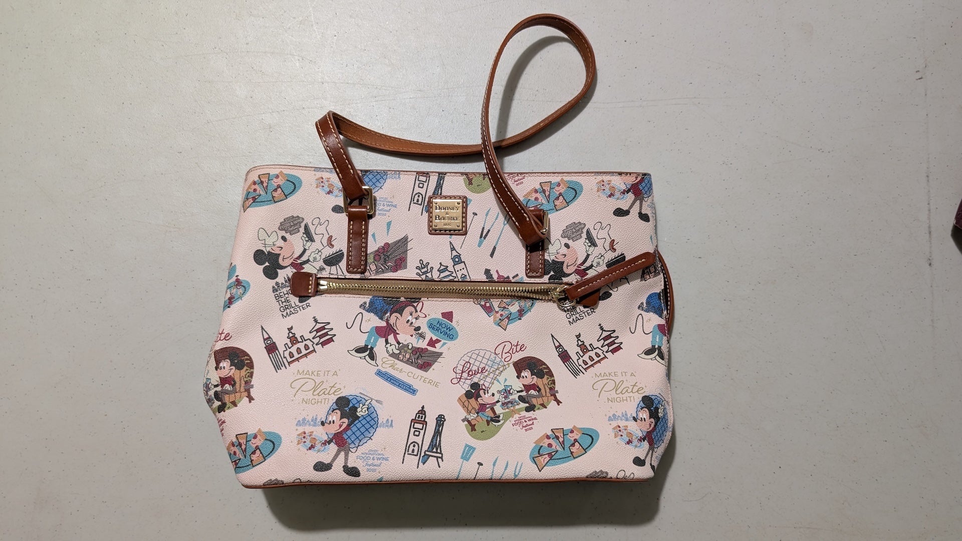 Epcot World Food and Wine Festival / Romantic Italy Tote Bag from Dooney & Bourke - 2022 Handbag (Coated Cotton, Leather Tote Bag, Disney Characters, Travel, Europe, Cream, Brown, Multi-color)