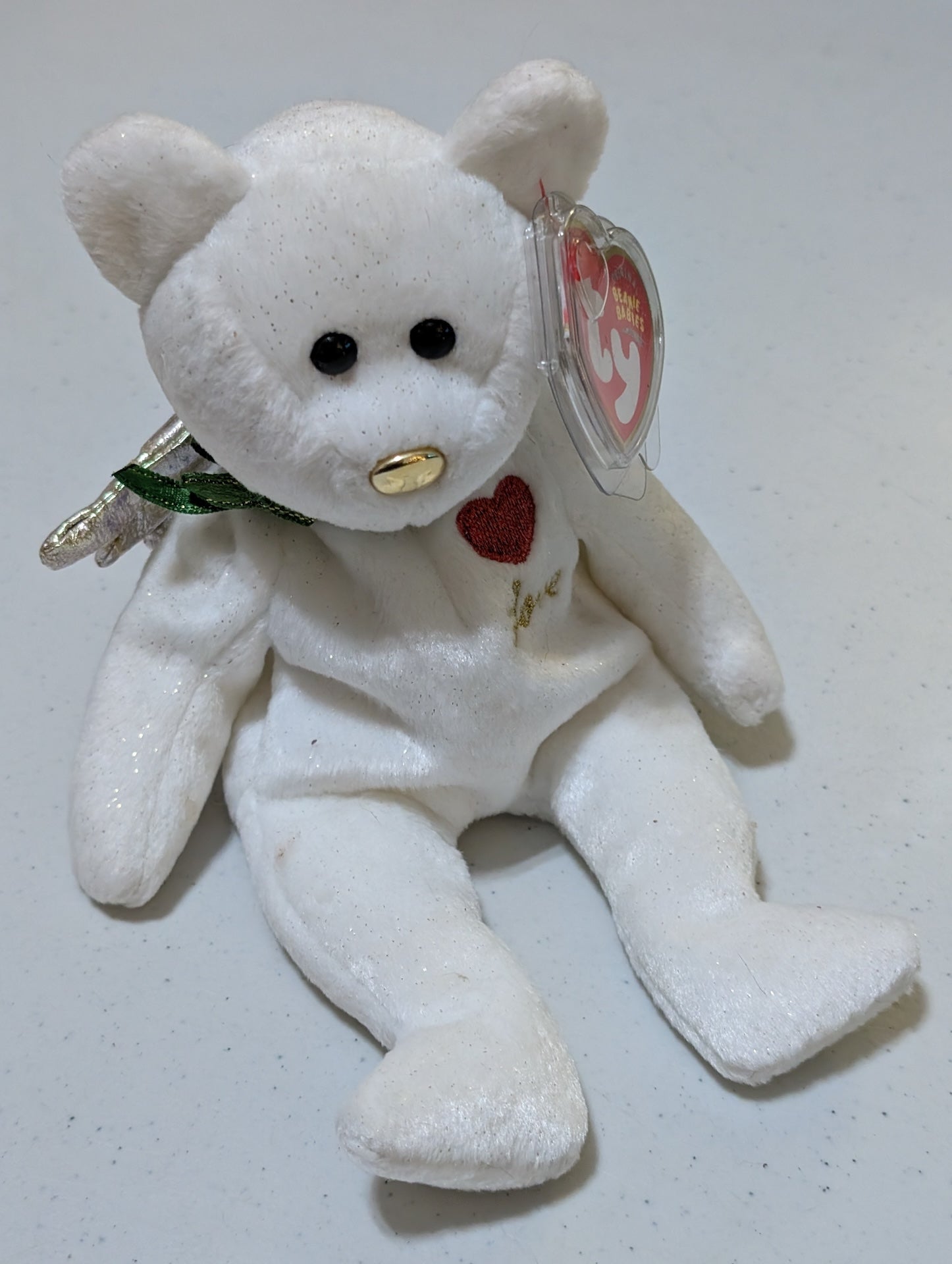 Halo II the Bear - Ty Beanie Baby (White, Gold, 2000, Plush Toy, MWMT, Stuffed Animal, Vintage, Retired, Plushie)