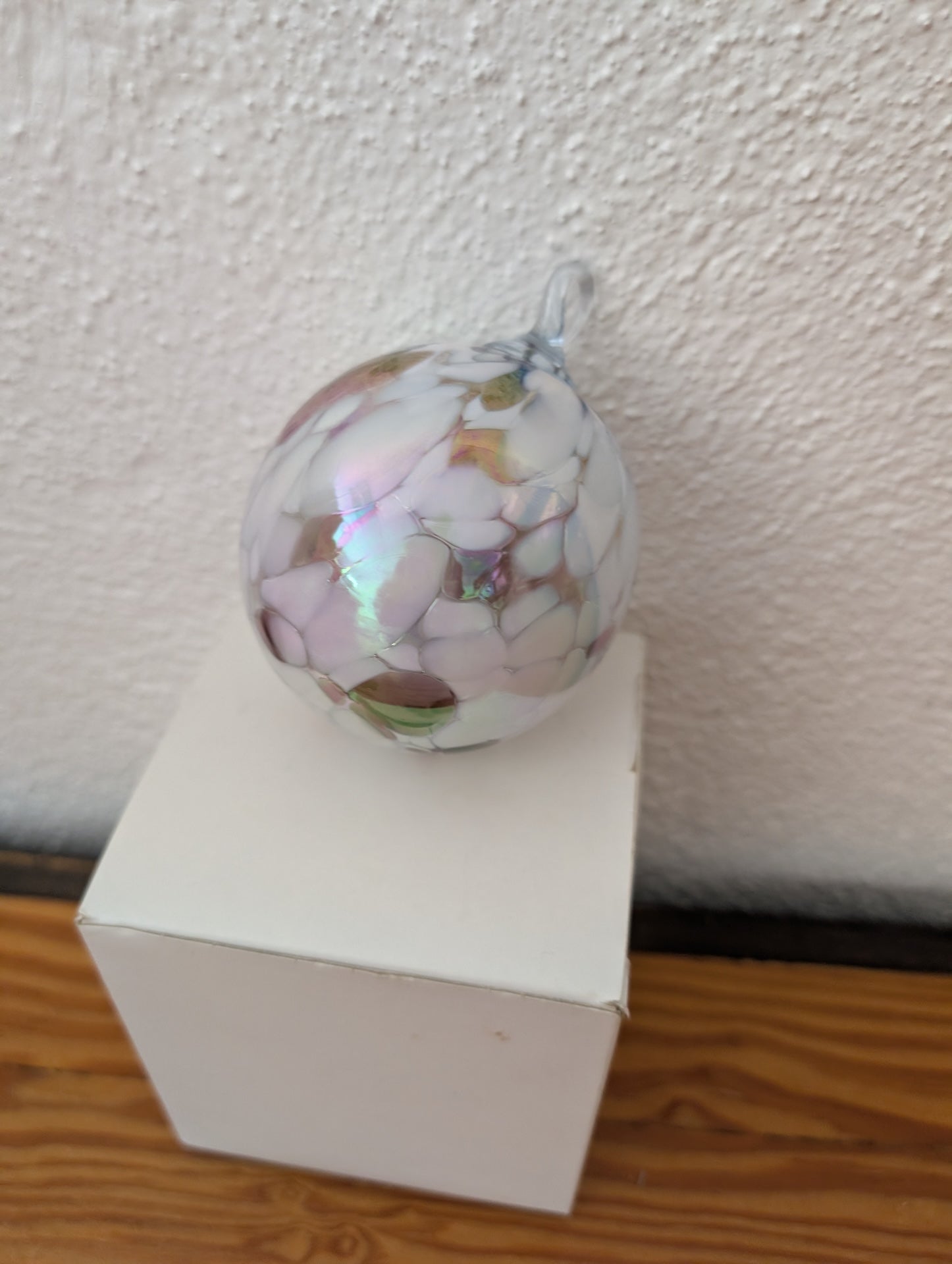 Hand-Blown Glass Ornament from Unknown - Holiday Decor (Glass Ornament, Artisan, Contemporary, Eclectic, White, Pink, Brown, Iridescent)