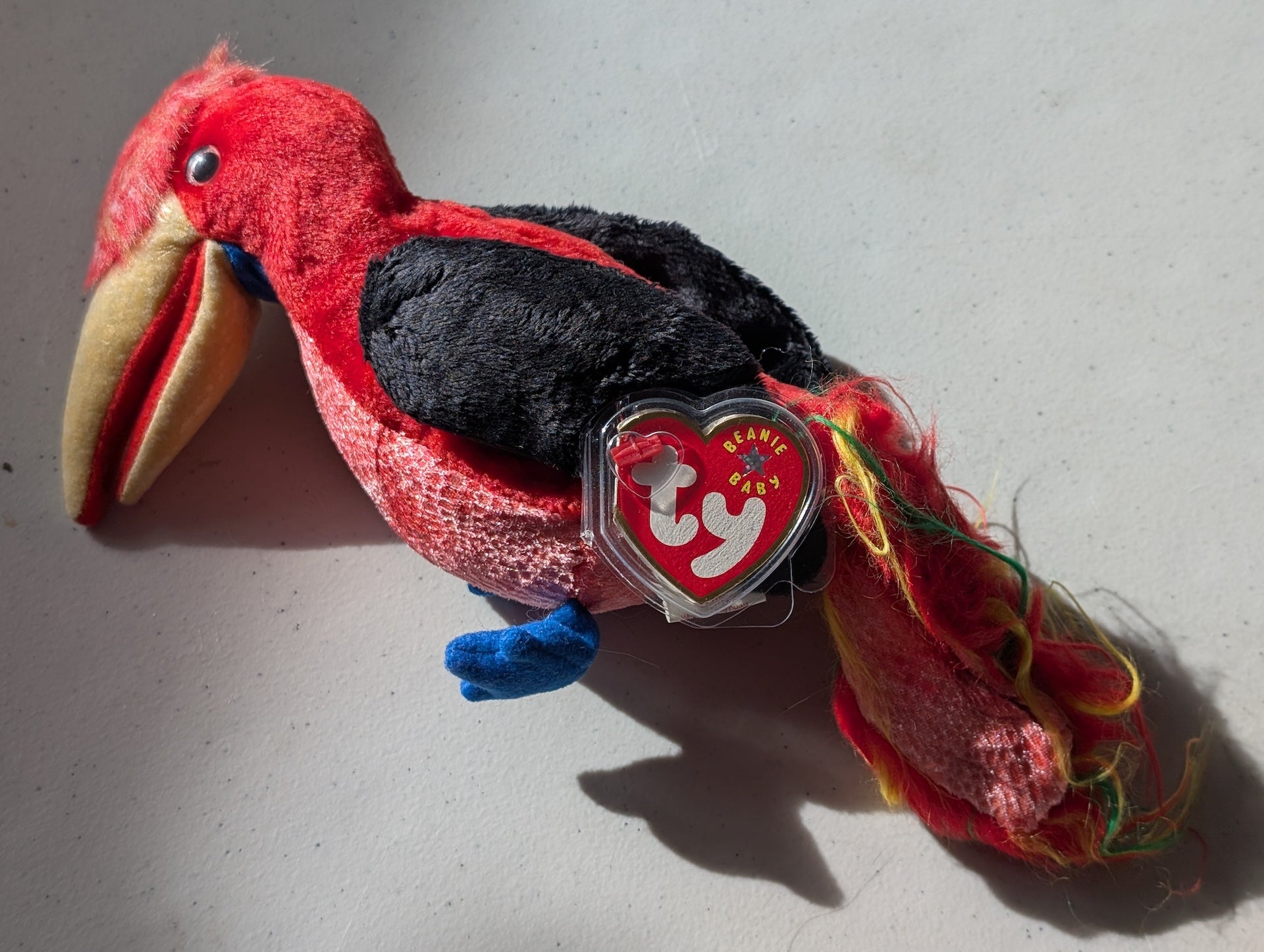 Frills the Hornbill- Ty Beanie Baby (Red, Black, 1997, Plushie, Toy, Stuffed Animal, MWMT, Vintage, Retired)
