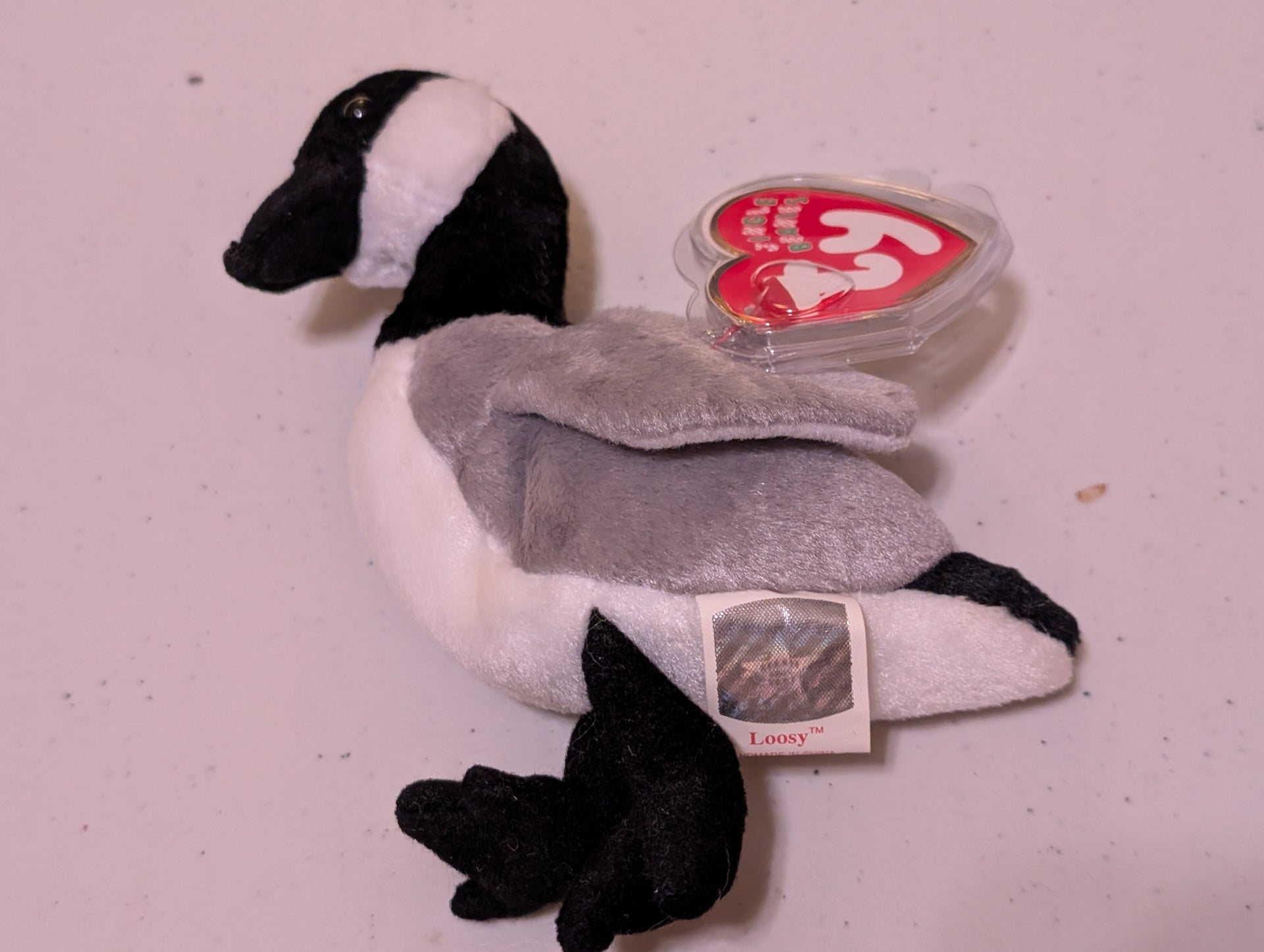 Loosy the Goose - Ty Beanie Baby (Black, White, Gray, 1999, Plush Toy, Stuffed Animal, MWMT, Vintage, Retired)
