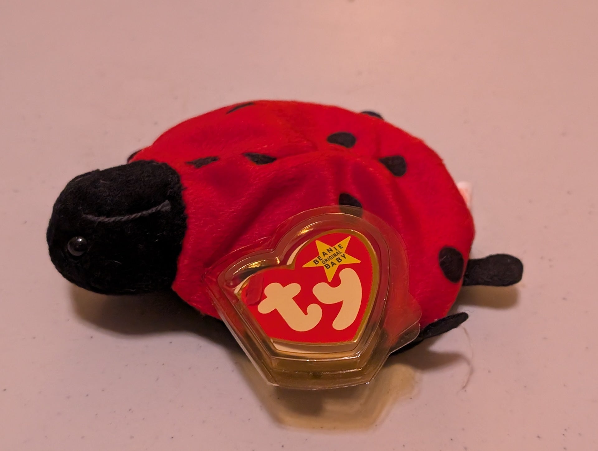Lucky the Ladybug - Ty Beanie Baby (Red, Black, 1995, Plush Toy, MWMT, Stuffed Animal, Vintage, Retired, Plushie)