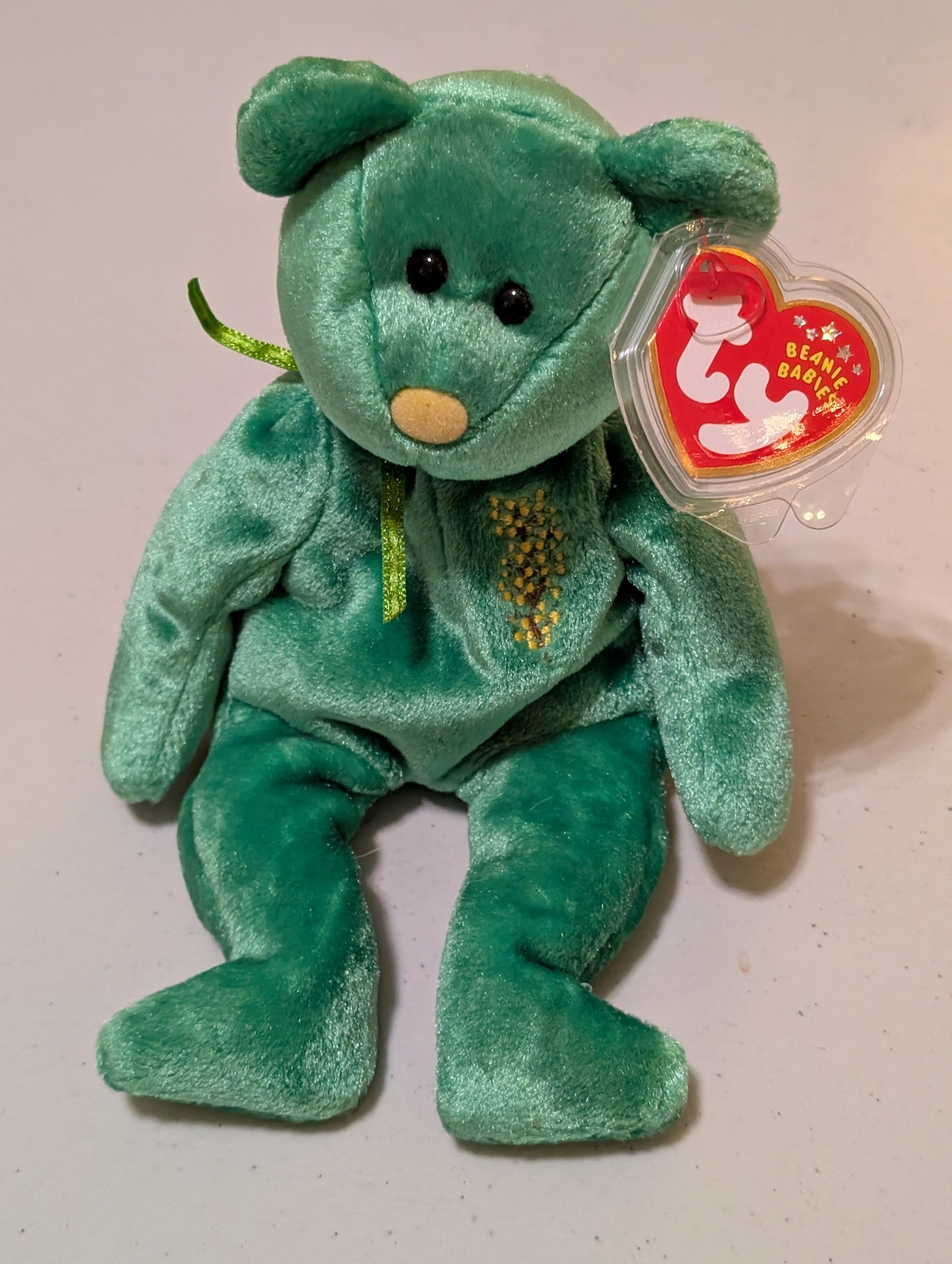 September the Bear - Ty Beanie Baby (Green, 2001, Plush Toy, Stuffed Animal, MWMT, Vintage, Retired)