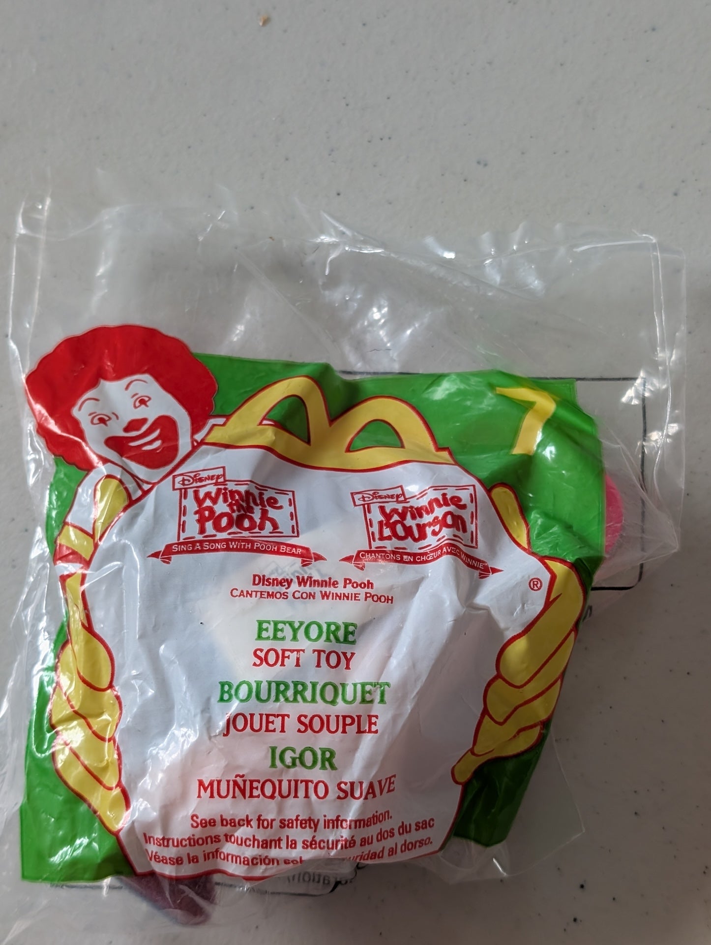 Sing a Song with Pooh Bear - Eeyore - McDonald's / Disney Happy Meal Toy (Blue, Pink, 1998, Plush Toy)